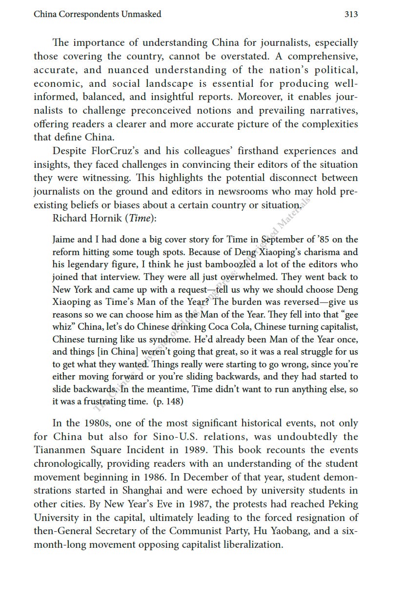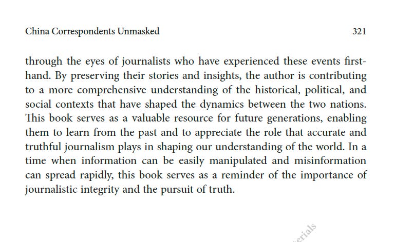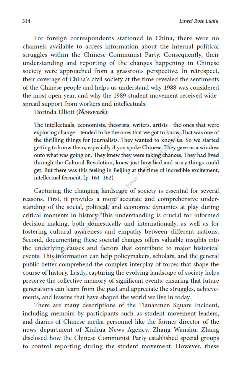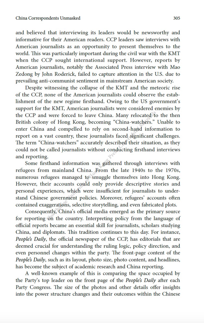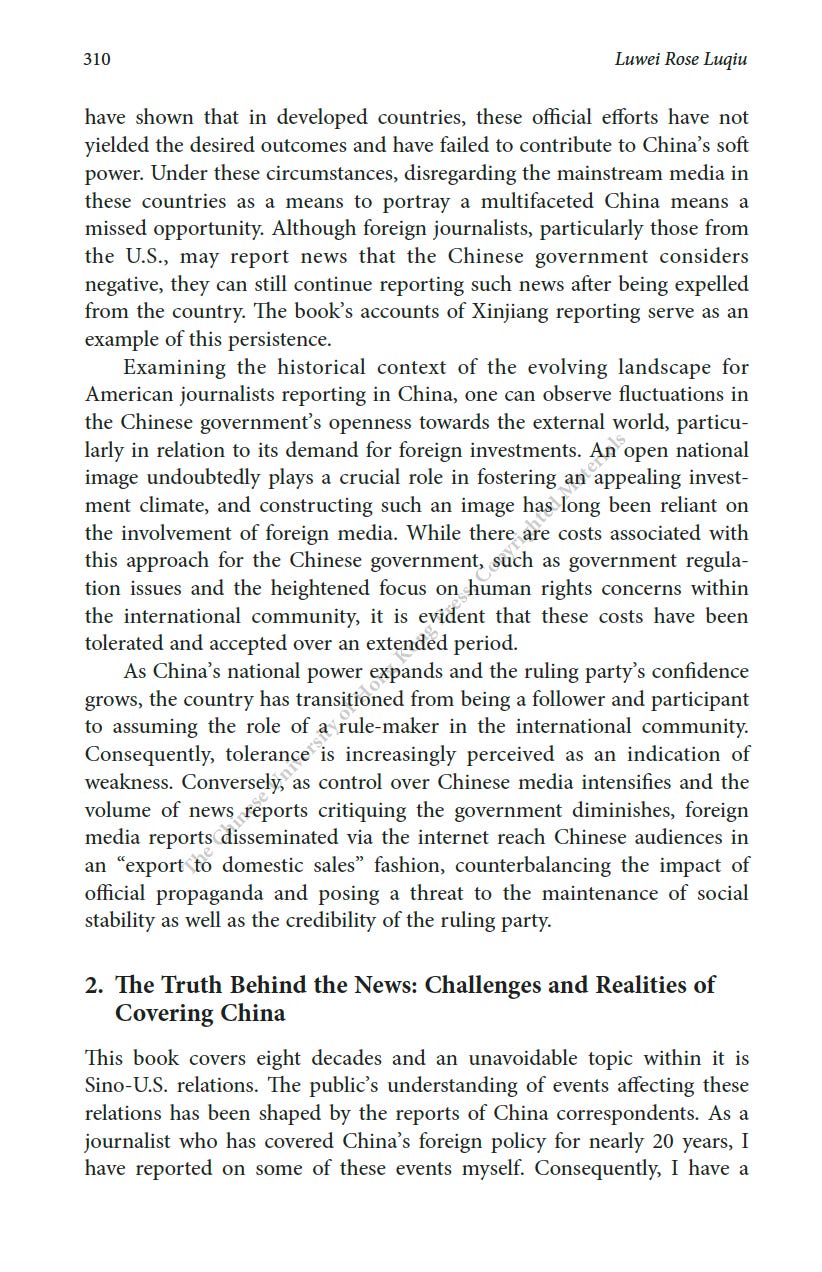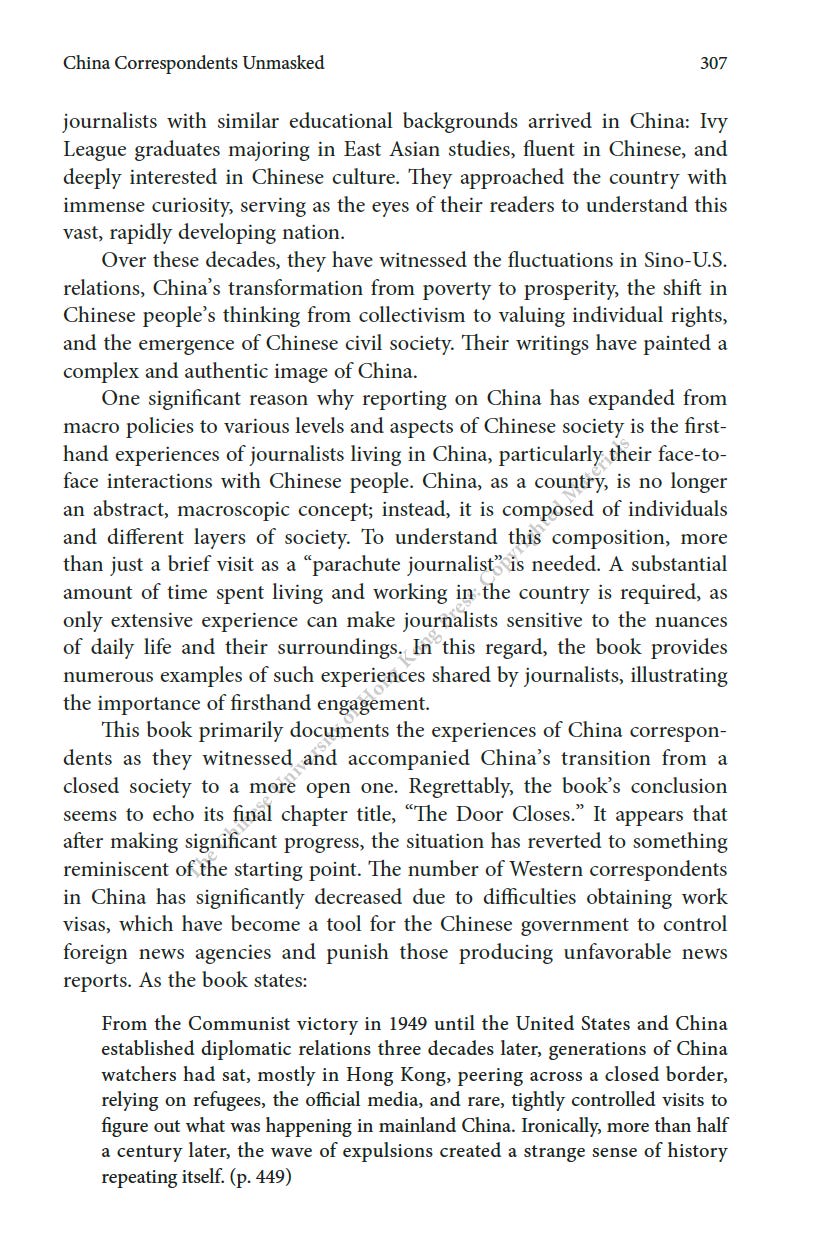 推薦一本書:美國駐華記者的口述歷史最近為China Review寫了一篇人生最長的書評,八千字。這本書是原CNN駐華記者Mike Chinoy花費了很長時間完成的一個project,採訪了超過一百名美國駐華記者,從採訪國共內戰的記者開始,一直到2021年採訪清零政策。其實我很羨慕他,可以有時間和精力完成這樣的一部口述歷史,因為不僅僅可以從講述中看中國的變化,也是美國新聞史研究的重要一手資料。閭丘露薇 Rose LuqiuSep 06, 2023171ShareThanks for reading 閭丘露薇’s Substack! Subscribe for free to receive new posts and support my work.Subscribe